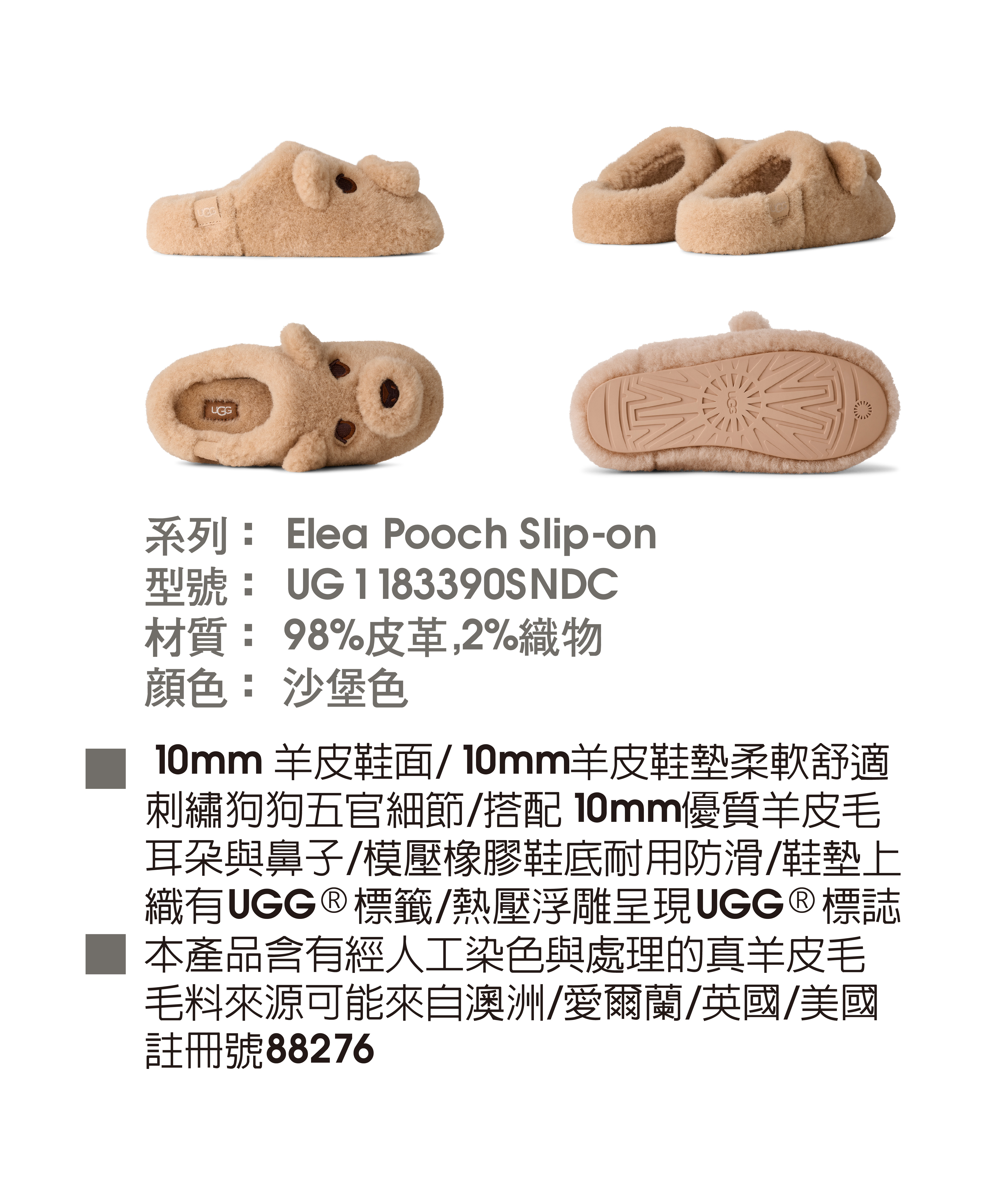 - 本產品含有經人工染色與處理的真羊皮毛,毛料來源可能來自澳洲、愛爾蘭、英國或美國。