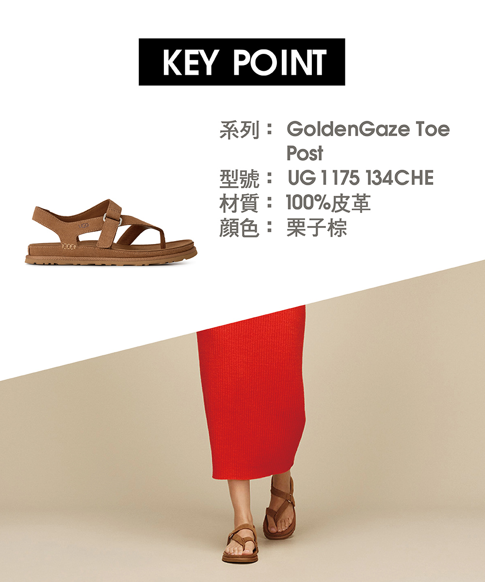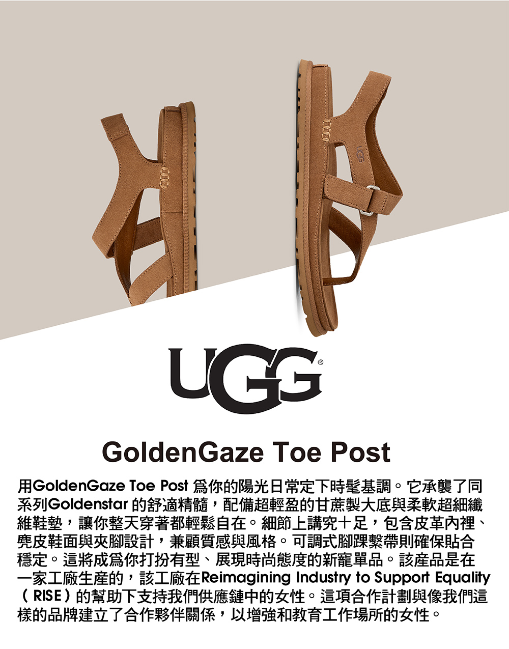用 GoldenGaze Toe Post 為你的陽光日常定下時髦基調。它承襲了同系列 Goldenstar 的舒適精髓,配備超輕盈的甘蔗製大底與柔軟超細纖維鞋墊,讓你整天穿著都輕鬆自在。細節上講究十足,包含皮革內裡、麂皮鞋面與夾腳設計,兼顧質感與風格。可調式腳踝繫帶則確保貼合穩定。這將成為你打扮有型、展現時尚態度的新寵單品。該產品是在一家工廠生產的,該工廠在 Reimagining Industry to Support Equality (RISE) 的幫助下支持我們供應鏈中的女性。這項合作計劃與像我們這樣的品牌建立了合作夥伴關係,以增強和教育工作場所的女性。