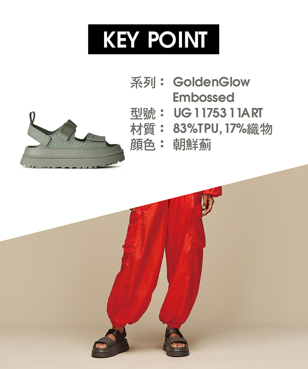 你是獨一無二的,而我們的 GoldenGlow 壓紋涼鞋也同樣獨特。這款涼鞋採用鱷魚壓紋設計,每雙圖紋皆不相同,如你一樣充滿個性。鞋底使用超輕盈的甘蔗 EVA 製成,鞋帶與內襯則選用 100% 回收纖維製成,帶來持久的舒適感與滿滿的好心情。該產品是在一家工廠生產的,該工廠在 Reimagining Industry to Support Equality (RISE) 的幫助下支持我們供應鏈中的女性。這項合作計劃與像我們這樣的品牌建立了合作夥伴關係,以增強和教育工作場所的女性。