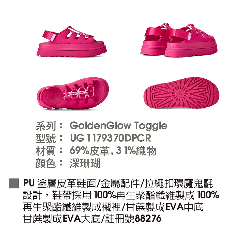 - 拉繩扣環,魔鬼氈設計,鞋帶採用 100% 再生聚酯纖維製成