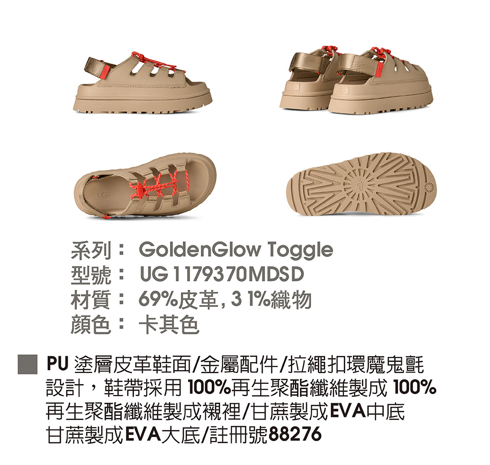 - 拉繩扣環,魔鬼氈設計,鞋帶採用 100% 再生聚酯纖維製成