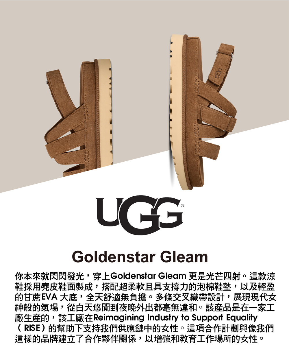 你本來就閃閃發光,穿上 Goldenstar Gleam 更是光芒四射。這款涼鞋採用麂皮鞋面製成,搭配超柔軟且具支撐力的泡棉鞋墊,以及輕盈的甘蔗 EVA 大底,全天舒適無負擔。多條交叉織帶設計,展現現代女神般的氣場,從白天悠閒到夜晚外出都毫無違和。該產品是在一家工廠生產的,該工廠在 Reimagining Industry to Support Equality (RISE) 的幫助下支持我們供應鏈中的女性。這項合作計劃與像我們這樣的品牌建立了合作夥伴關係,以增強和教育工作場所的女性。
