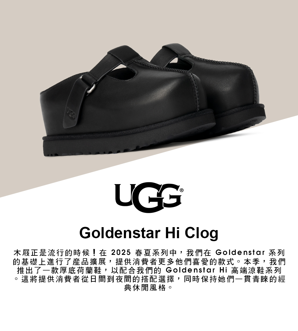 木屐正是流行的時候!在 2025 春夏系列中,我們在 Goldenstar 系列的基礎上進行了產品擴展,提供消費者更多他們喜愛的款式。本季,我們推出了一款厚底荷蘭鞋,以配合我們的 Goldenstar Hi 高端涼鞋系列。這將提供消費者從日間到夜間的搭配選擇,同時保持她們一貫青睞的經典休閒風格。