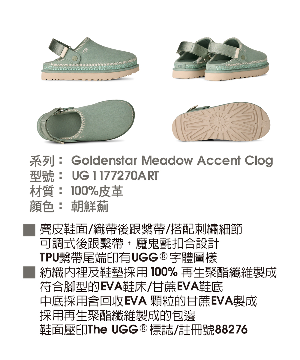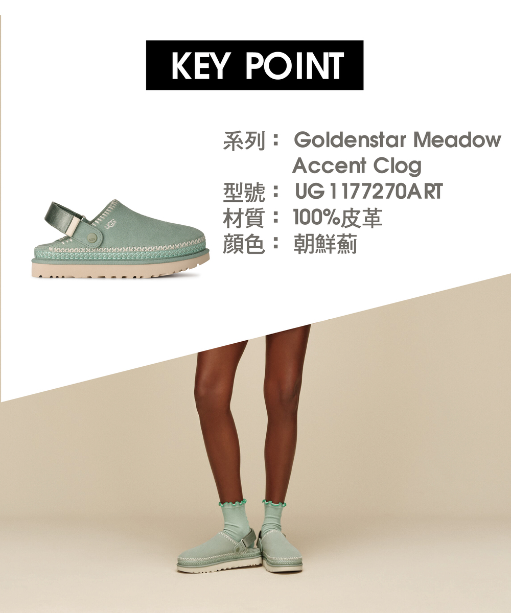 結合 UGG® 經典舒適與手工美學風格,我們的 Goldenstar Meadow Accent Clog 是一雙點綴精緻刺繡的藝術感木屐鞋。不論是漫步在農夫市集,還是搭配時尚穿搭展現造型感,它都能完美融入。可調式鞋帶設計具旋轉功能,能當作後跟帶穿著固定,或向前翻折變成便鞋式穿法,輕鬆穿脫更有彈性。內裡使用 100% 再生紡織材料,搭配防臭處理,保持足部清爽舒適;鞋底則採用超輕盈甘蔗 EVA 材質,全天候提供柔軟支撐。該產品是在一家工廠生產的,該工廠在 Reimagining Industry to Support Equality (RISE) 的幫助下支持我們供應鏈中的女性。這項合作計劃與像我們這樣的品牌建立了合作夥伴關係,以增強和教育工作場所的女性。