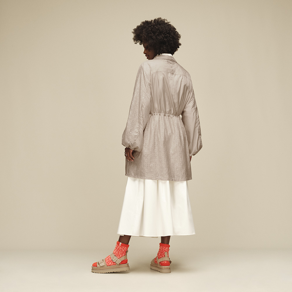 - 腰部設有彈力調節繩,搭配 UGG® 字體風格金屬扣具