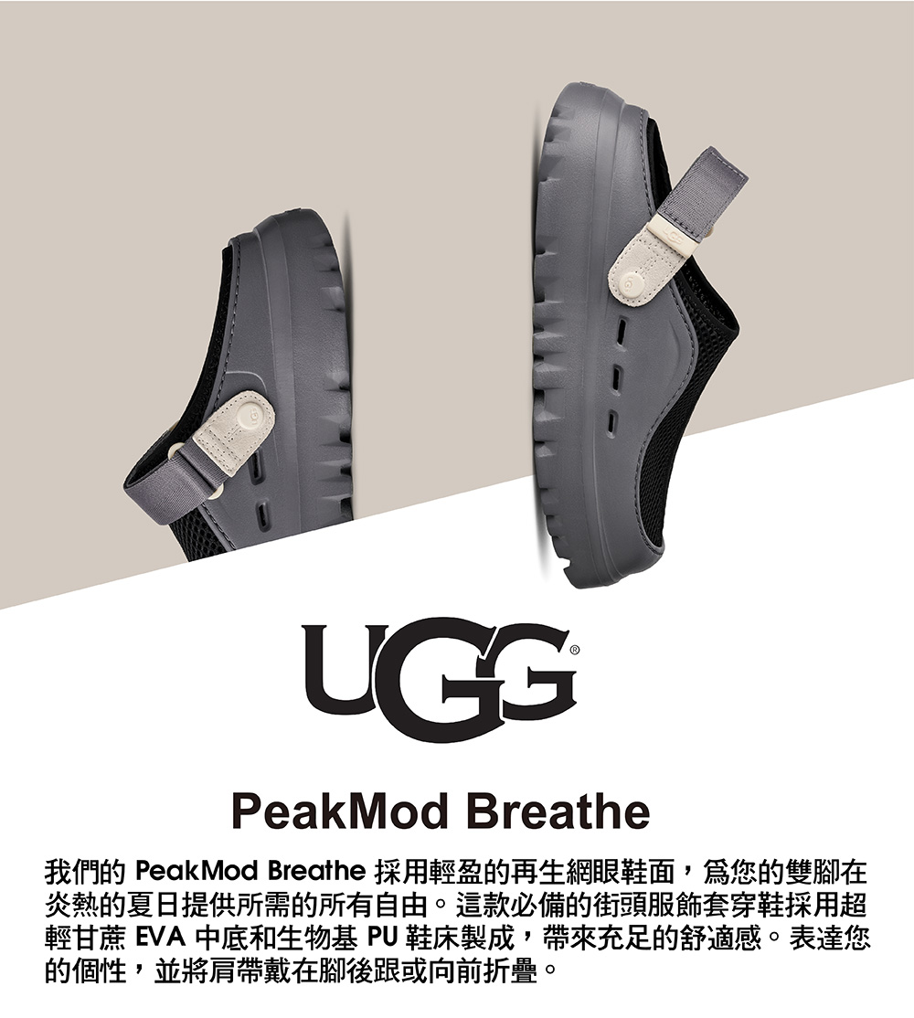 我們的 PeakMod Breathe 採用輕盈的再生網眼鞋面,為您的雙腳在炎熱的夏日提供所需的所有自由。這款必備的街頭服飾套穿鞋採用超輕甘蔗 EVA 中底和生物基 PU 鞋床製成,帶來充足的舒適感。表達您的個性,並將肩帶戴在腳後跟或向前折疊。