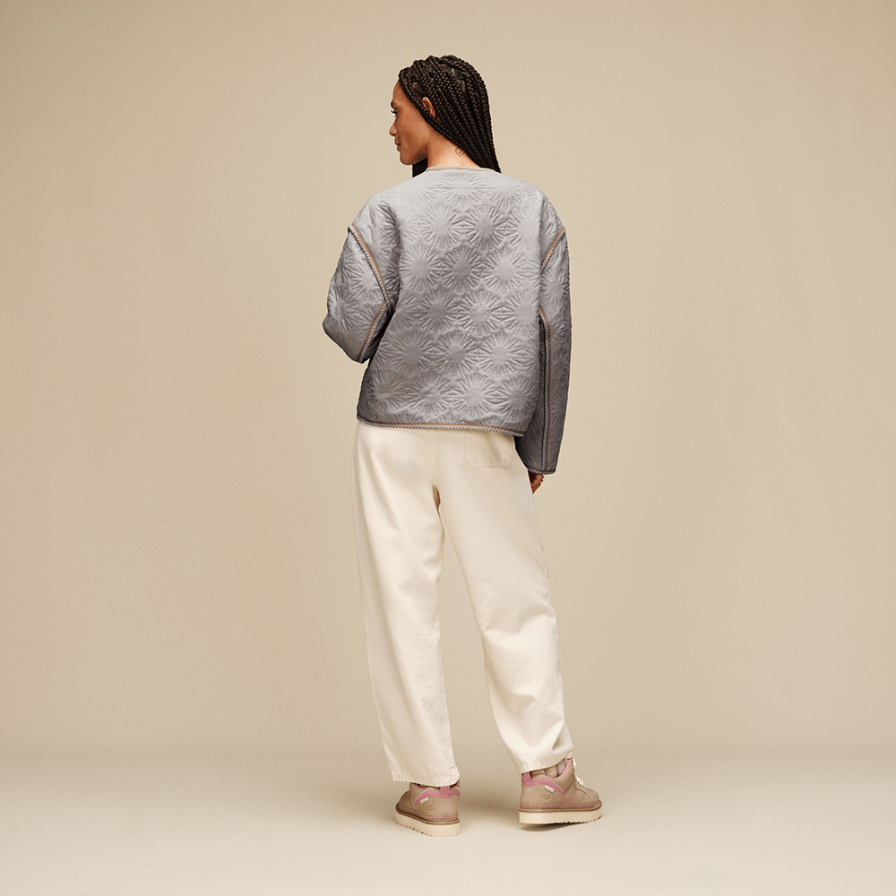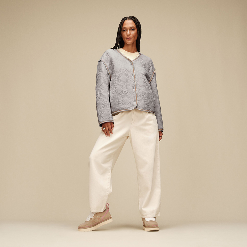 我們的超柔軟 Sun Quilted Jacket 正是你衣櫃裡一直缺少的那件舒適百搭的季節交替外套。搭配太陽 Logo 刺繡與經典 UGGbraid 編織滾邊,這件外套是應對氣溫變化的理想層次單品,保暖同時毫無負擔。側邊口袋、落肩設計與方正寬鬆剪裁,讓整體風格更顯輕鬆隨性,成為你本季最信賴、最常穿的定番之選。該產品是在一家工廠生產的,該工廠在 Reimagining Industry to Support Equality (RISE) 的幫助下支持我們供應鏈中的女性。這項合作計劃與像我們這樣的品牌建立了合作夥伴關係,以增強和教育工作場所的女性。