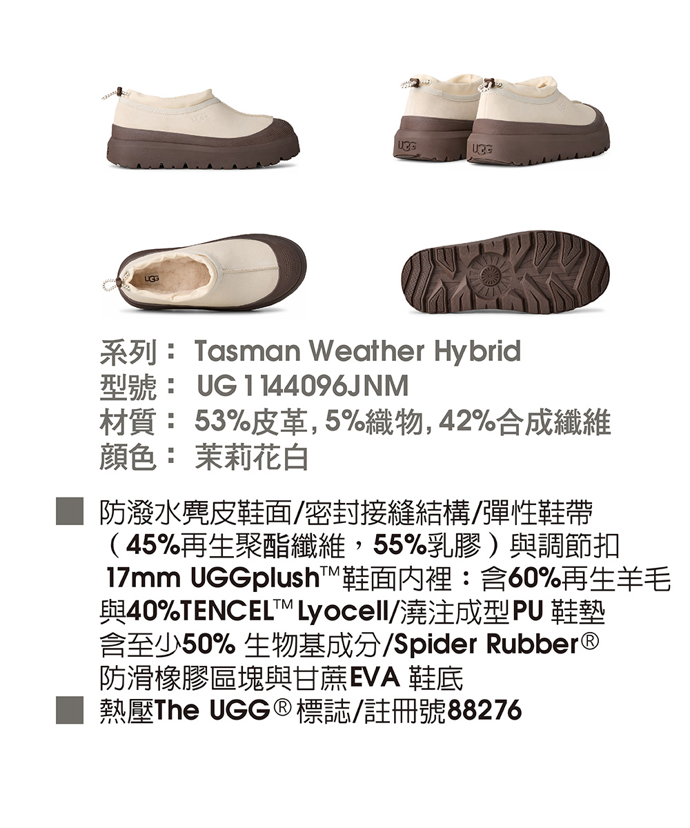 - 17mm UGGplush™ 鞋面內裡:含 60% 再生羊毛與 40% TENCEL™ Lyocell