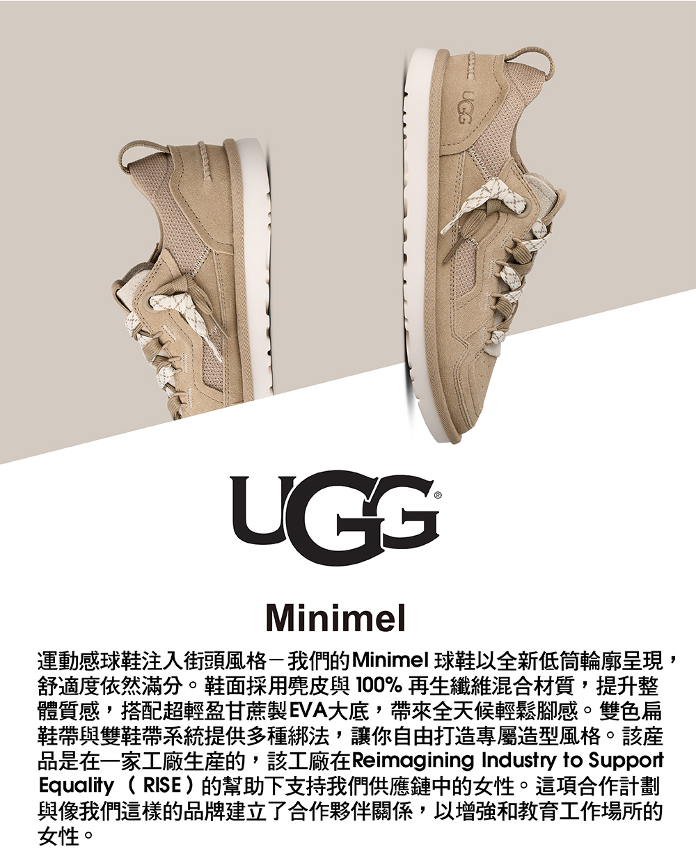 該產品是在一家工廠生產的,該工廠在 Reimagining Industry to Support Equality (RISE) 的幫助下支持我們供應鏈中的女性。這項合作計劃與像我們這樣的品牌建立了合作夥伴關係,以增強和教育工作場所的女性。Minimel為男女對鞋款。